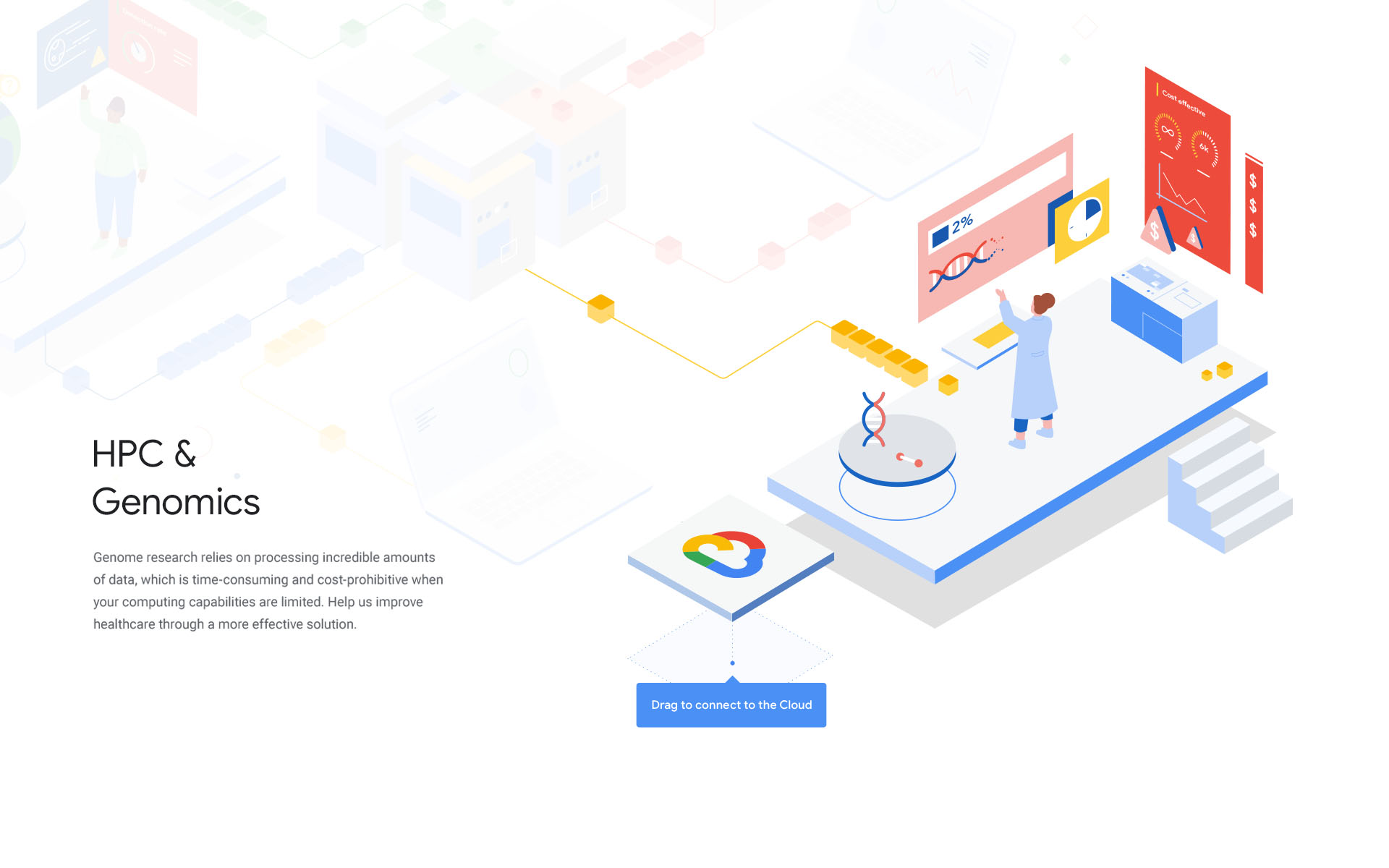 The isometrically illustrated experience revolves around four inspiring cases from widely different disciplines that all use a supercomputer to solve complex challenges facing humanity. Through interacting with the stories, visitors quickly grow their understanding of supercomputers and the major difference cloud-based solutions can make.